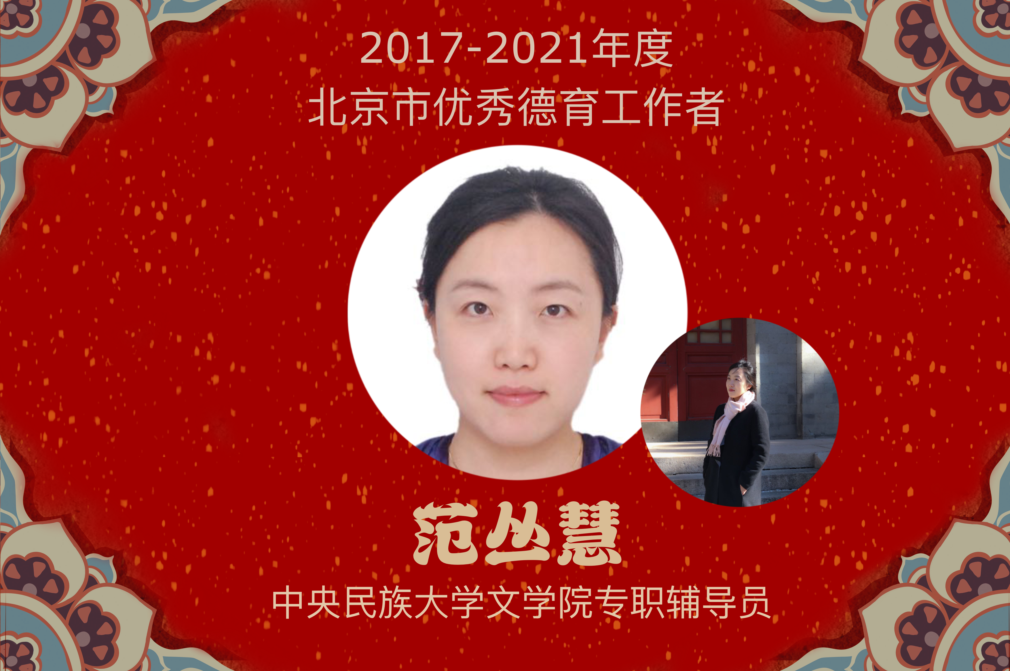 感谢民大提供的不断成长的平台!感谢领导的信任和组织的关心!至高的荣耀,归属于同事们的厚爱和学生们的支持!荣誉带给我更高层次的动力并鞭策我努力前行。习近平总书记在给青年人和党员干部的寄语中多次强调以德修身,今后我将继续慎独慎微,勤于自省,怀揣感恩之心为国育才,以感激之情为才铸魂,永奉敬业之道,不忘教育之初心,不改平淡之本色,尽力尽心把事做好,向上向善把人做好,坚守教育情怀和理想,用生命去影响生命!